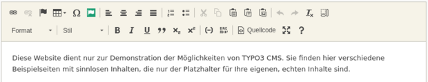 Zur Bearbeitung des Textes bietet TYPO3 einen komfortablen Editor, dessen Bedienung der eines Textverarbeitungsprogrammes gleicht.